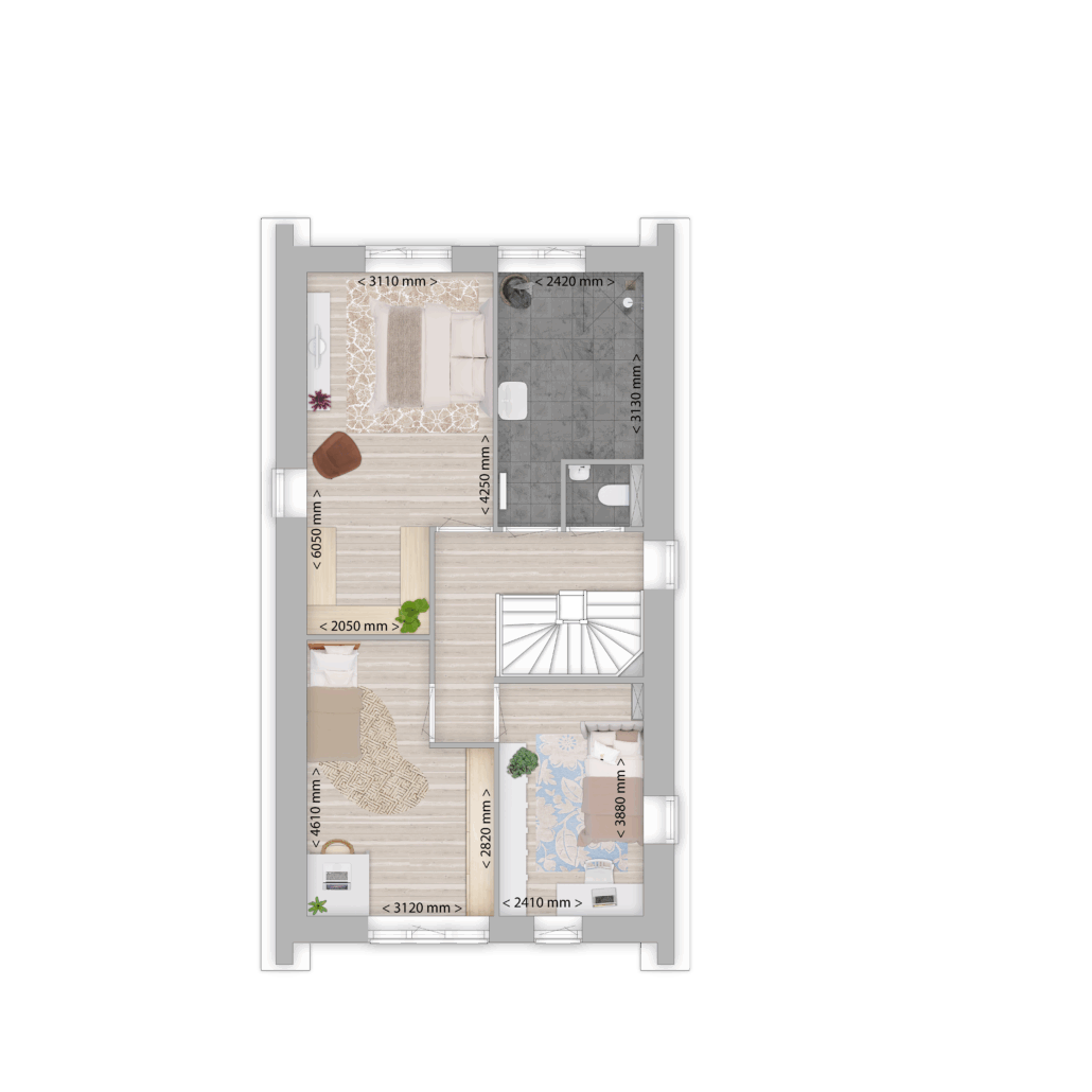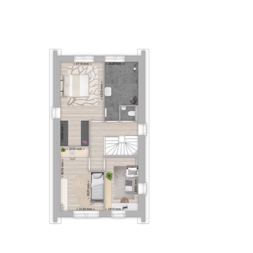 Op de eerste verdieping vindt u drie slaapkamers, waaronder één extra ruime kamer met volop mogelijkheden, bijvoorbeeld voor een inloopkast. Ook de comfortabele badkamer is van alle gemakken voorzien en wordt compleet opgeleverd met sanitair en tegelwerk. daarnaast bevindt zich op de eerste verdieping het standaard separaat toilet. De zolderverdieping is vrij indeelbaar, zodat u deze helemaal naar wens kunt inrichten.
