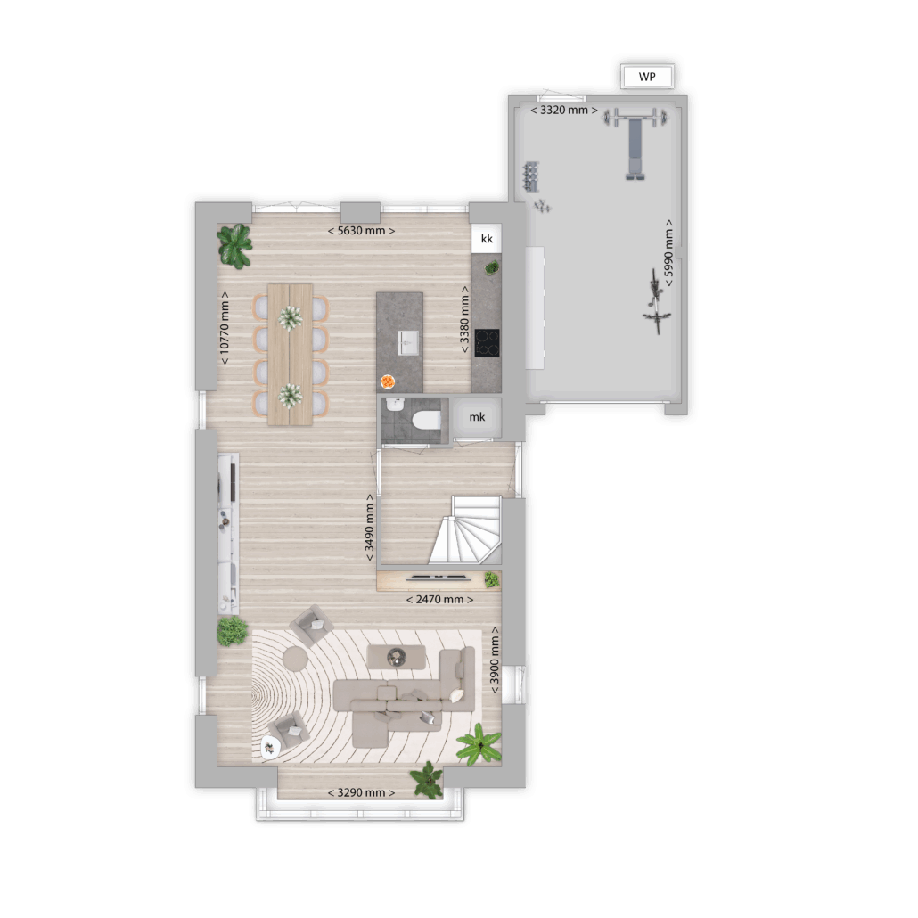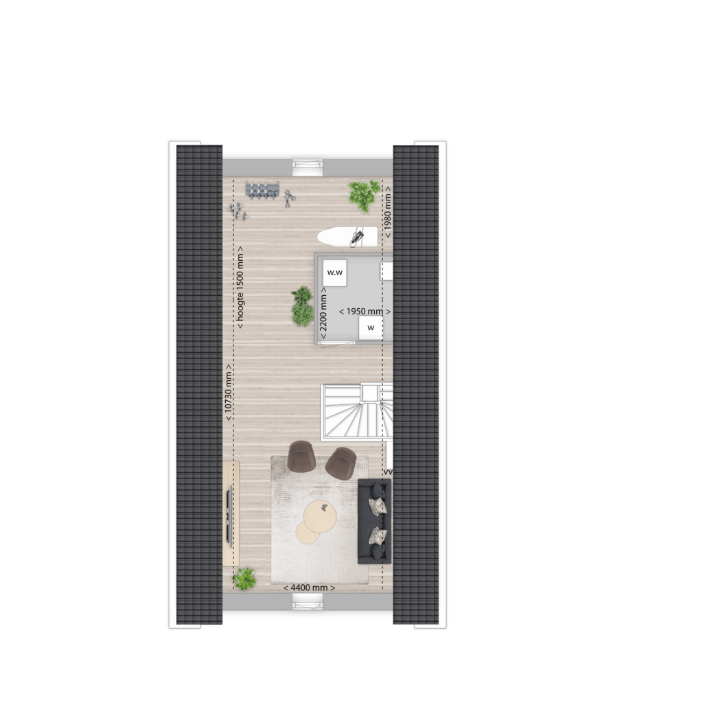 De hier vermelde woningoppervlakte en inhoud betreft een standaard woning, zonder het meerwerkpakket met o.a. een uitbouw.